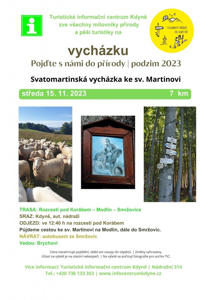 Na Svatomartinskou vycházku se nás sešlo 14. Z rozcestí pod Korábem jsme šli po cyklostezce směr Nevděk na Modlín. Nedaleko této cesty je pomníček věnovaný svatému Martinovi, u kterého jsme se vyfotili. Z cesty byly krásne výhledy na opačnou stranu korábského hřebenu, dobře byl vidět Bolfánek nad Chudenicemi. Bohužel, počasi nám tentokrát nepřálo. Přesto se nám podařilo stihnout autobus ze Smržovic v 15 hod. Takže se všichni zmoklí turisté dostali včas domů.