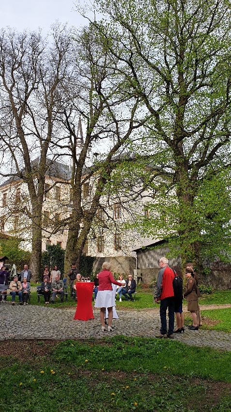 Zahájení vernisáže proběhlo v parku před muzeem za krásného slunečného podvečera.
