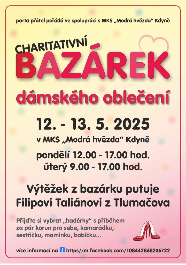 Výtěžek z bazárku poputuje Filipovi Taliánovi z Tlumačova