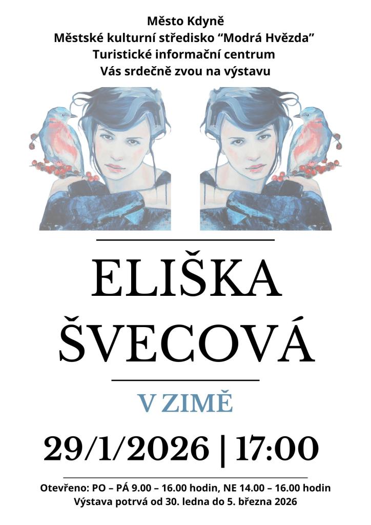 Město Kdyně, Městské kulturní středisko "Modrá Hvězda" Kdyně, Turistické informační centrum Vás srdečně zvou na výstavu obrazů Elišky Švecové "V ZIMĚ".